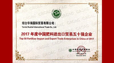 公司新聞【喜報(bào)】華海國際榮獲2017年度中國肥料進(jìn)出口貿(mào)易五十強(qiáng)企業(yè)