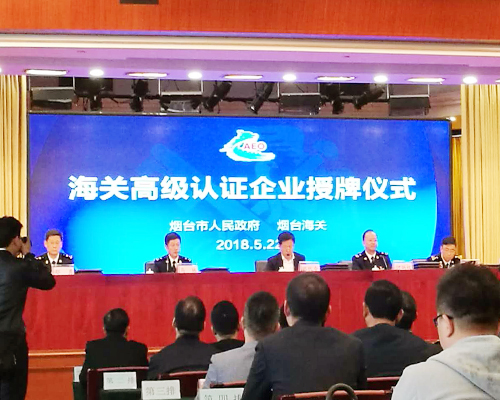 2018年5月22日上午,海關(guān)高級認(rèn)證企業(yè)授牌儀式暨海關(guān)企業(yè)信用管理辦法政策解讀會在煙臺東方海天酒店三樓舉行,煙臺市副市長張代令,海關(guān)關(guān)長何炳權(quán)等領(lǐng)導(dǎo)同志以及38家AEO高級認(rèn)證企業(yè)和100家優(yōu)秀企業(yè)的負(fù)責(zé)人代表參與了會議。